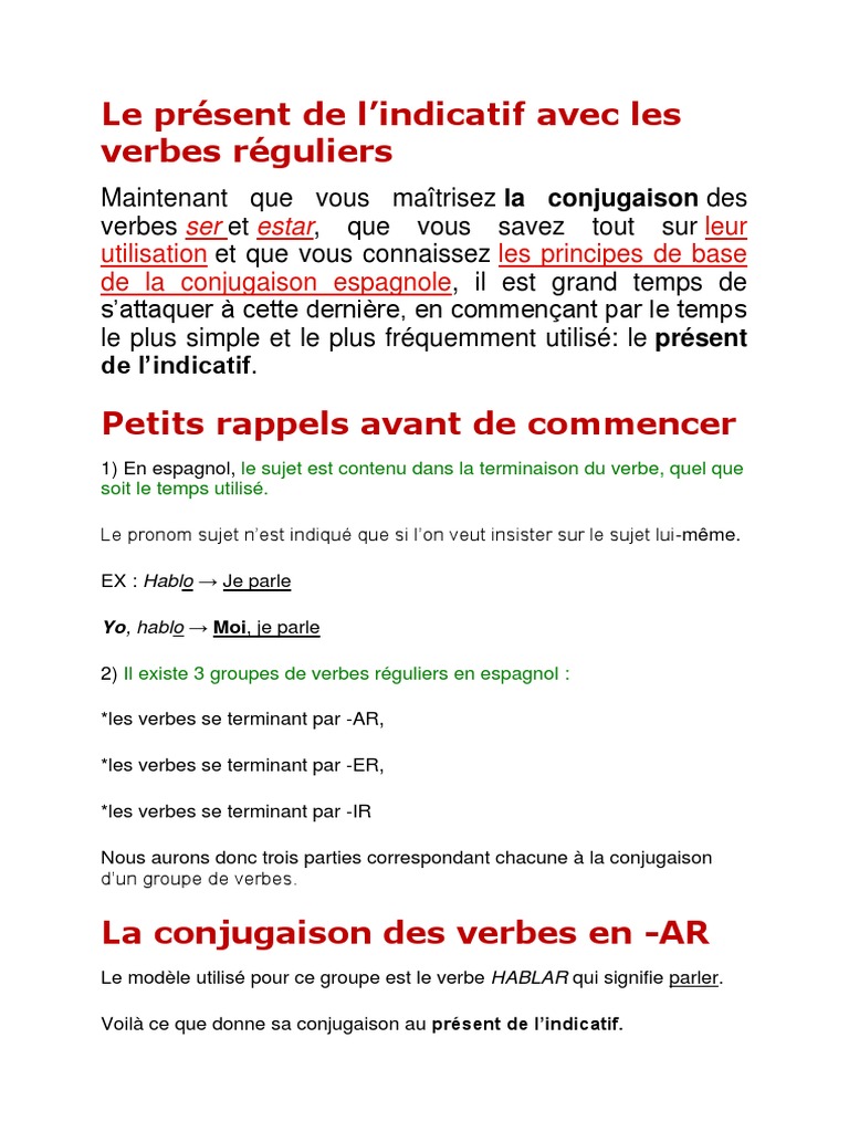 Il y a en espagnol, comme en français, des verbes réguliers et des verbes irréguliers. Voici une liste des verbes se rapprochant le plus Espagnol seconde conjugaison rédaction : Dans la conjugaison espagnole, il existe trois groupes de verbes réguliers ainsi que des verbes irréguliers : Apprendre l'espagnol en ligne gratuitement.